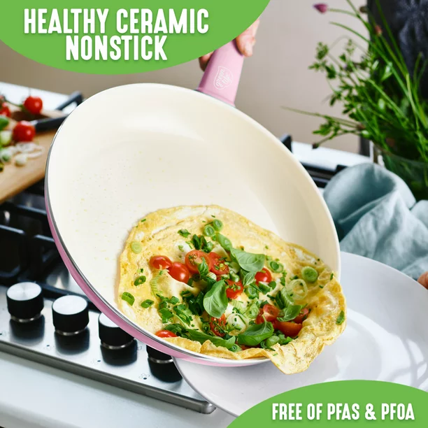 The Soft Grip collection is all about comfort and control. Designed for effortless performance and cleanup, this set features our toxin-free Thermalon nonstick coating, which is free of PFAS, PFOA, lead, and cadmium. GreenLife’s healthy ceramic nonstick is not stuck in the past—that’s why our ceramic nonstick starts with sand and creates 60% less CO2 emissions during the curing phase than traditional coatings.