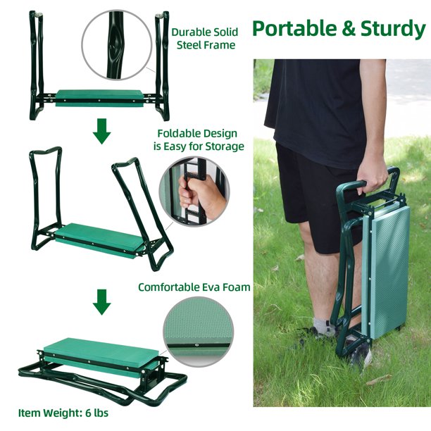 - Solid Construction & Lightweight: Enhanced steel tube frame with EVA foam kneeling pad works excellent as both kneeling pad and garden seat. It only weights 6 lb, easily carrying around in your garden and it can hold up to 660 lb
