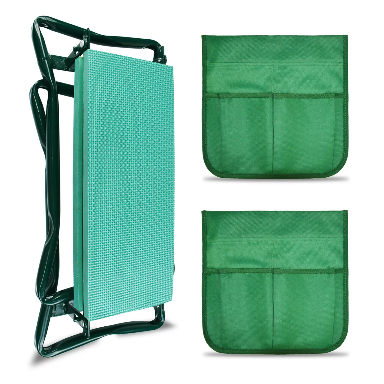 Lockways Folding Garden Kneeler Seat Portable Garden Stool with 2 Tool Pouches