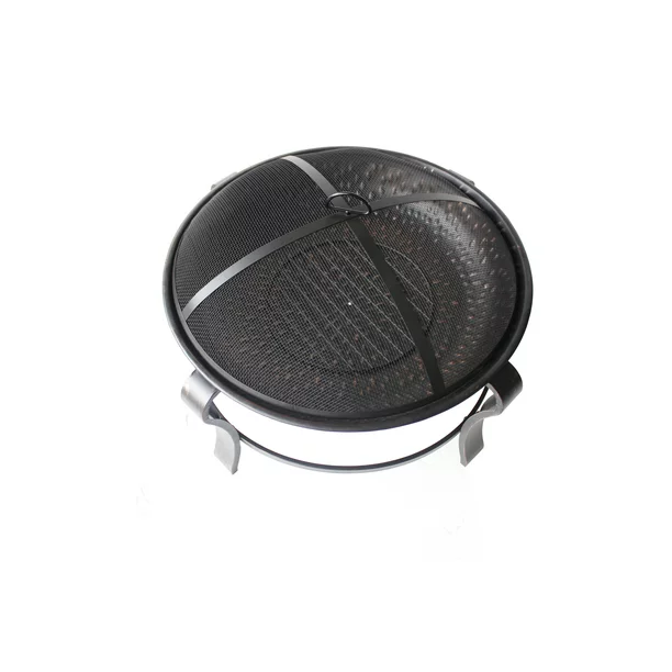 - Round outdoor fire pit set with mesh screen, poker, wood grate, and cover