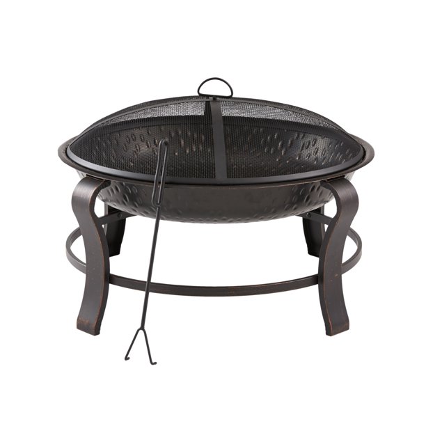 Mainstays Owen Park 28-Inch Round Wood Burning Fire Pit with Mesh Spark Guard