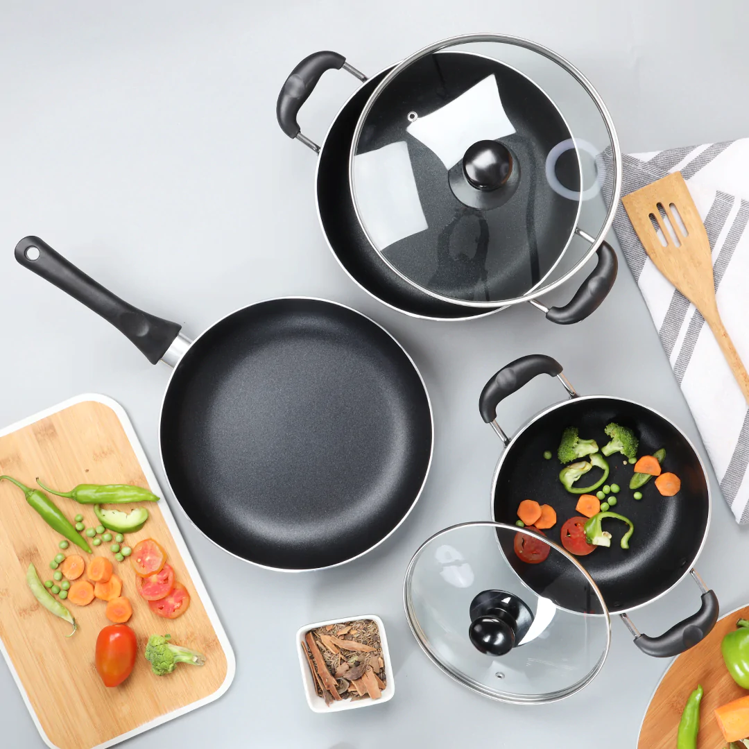The majestic tornado aluminium alloyed non-stick cookware set-11 pcs is our most prominent set and excellent for large families or prolific cooking. With the succession of elements in this set, the opportunities are limitless. The unprecedented mix of the preferred alloyed aluminium the Accuthermal Compact Bottom and the distinct design ensures fine food is prepared at moderate temperatures yielding yummy meals for you.