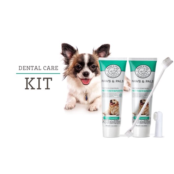 Paws & Pals Toothpaste Dental Care Kit for Dogs and Cats Beef-Flavored (Set of 3)