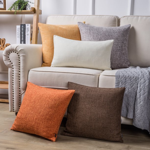 These Phantoscope Textural Faux Linen Series Decorative Throw Pillows will refresh your home with their chic design and soft touch and make your home even more lovely and stylish. These cute throw pillows are available in 4 sizes (12″x20″, 18″x18″, 20″x20″, and 22″x22″) and 15 colors (Beige, Blue, Pink, Green, Orange, Grey, Yellow, Coffee, Off White, etc.). These durable pillows come with both pillowcases and inserts made of high-quality and eco-friendly polyester. Their strong and invisible zippers are easy to zip and unzip without affecting the pillows’ unique textured looks. These pillows are easy to wash and care for, both machine and hand washable with no shrinkage. These decorative pillows are perfect for bed, couch, living room, car, and inside.